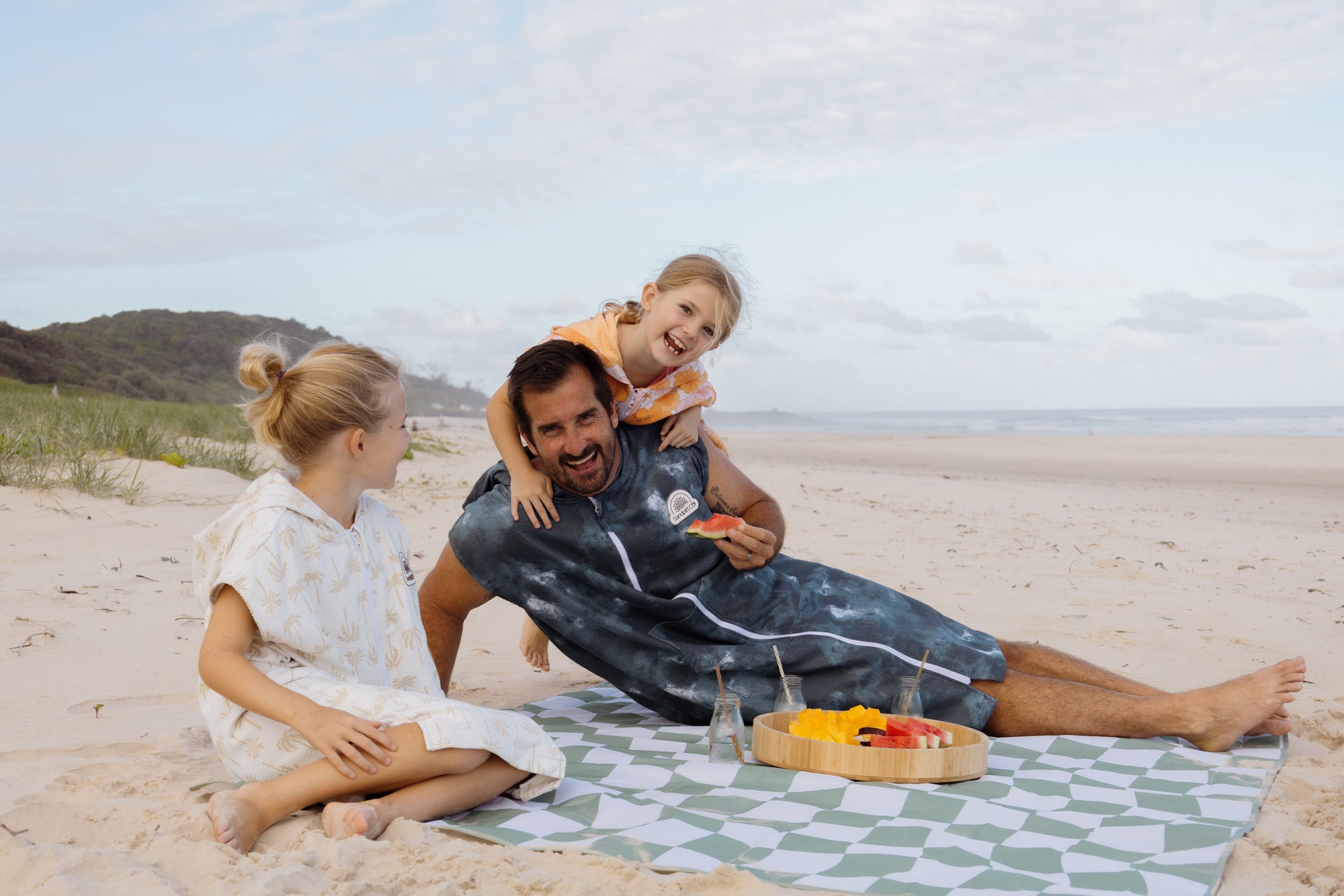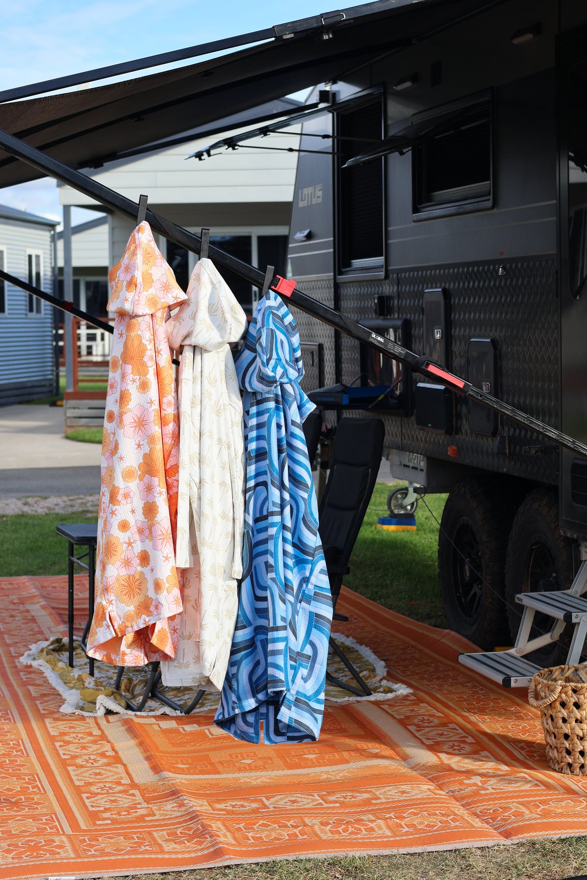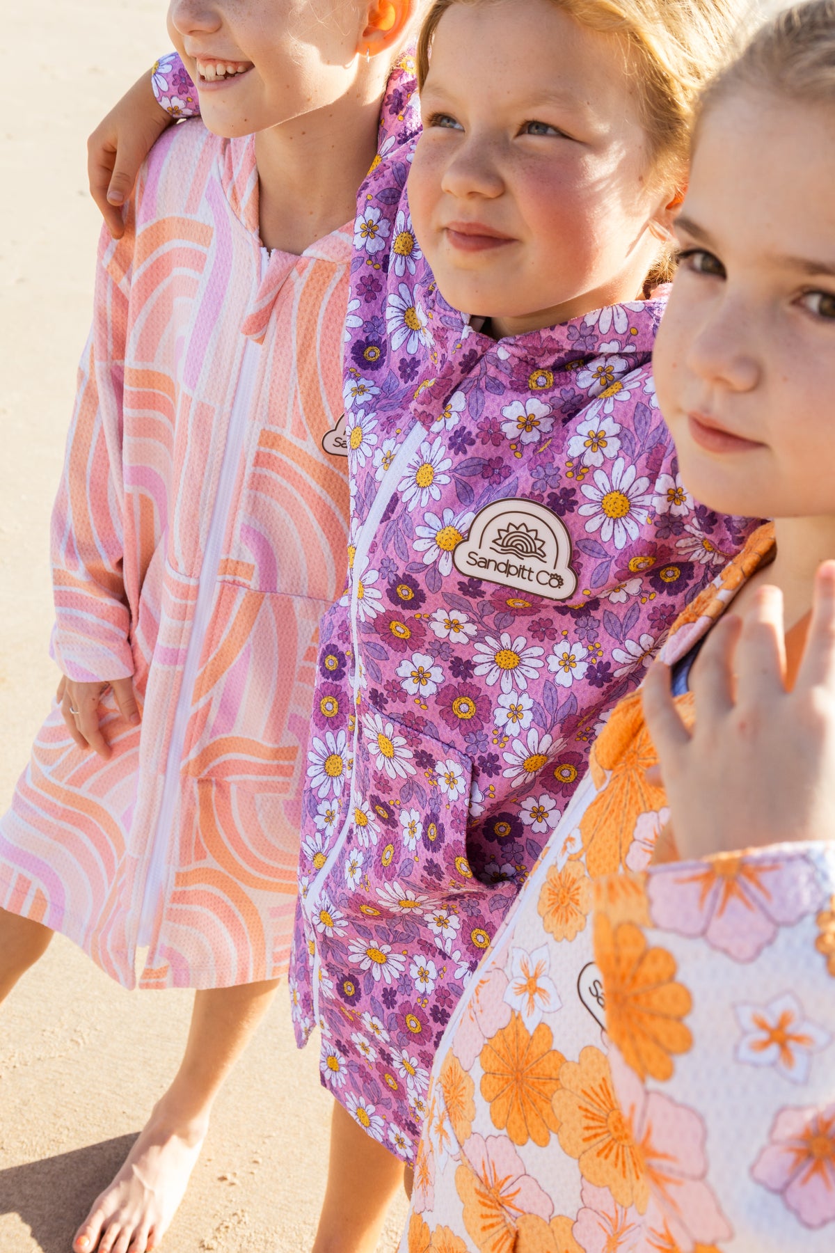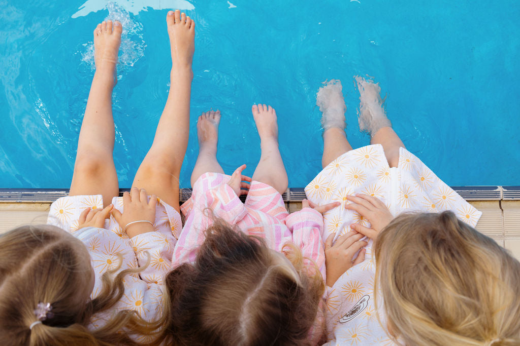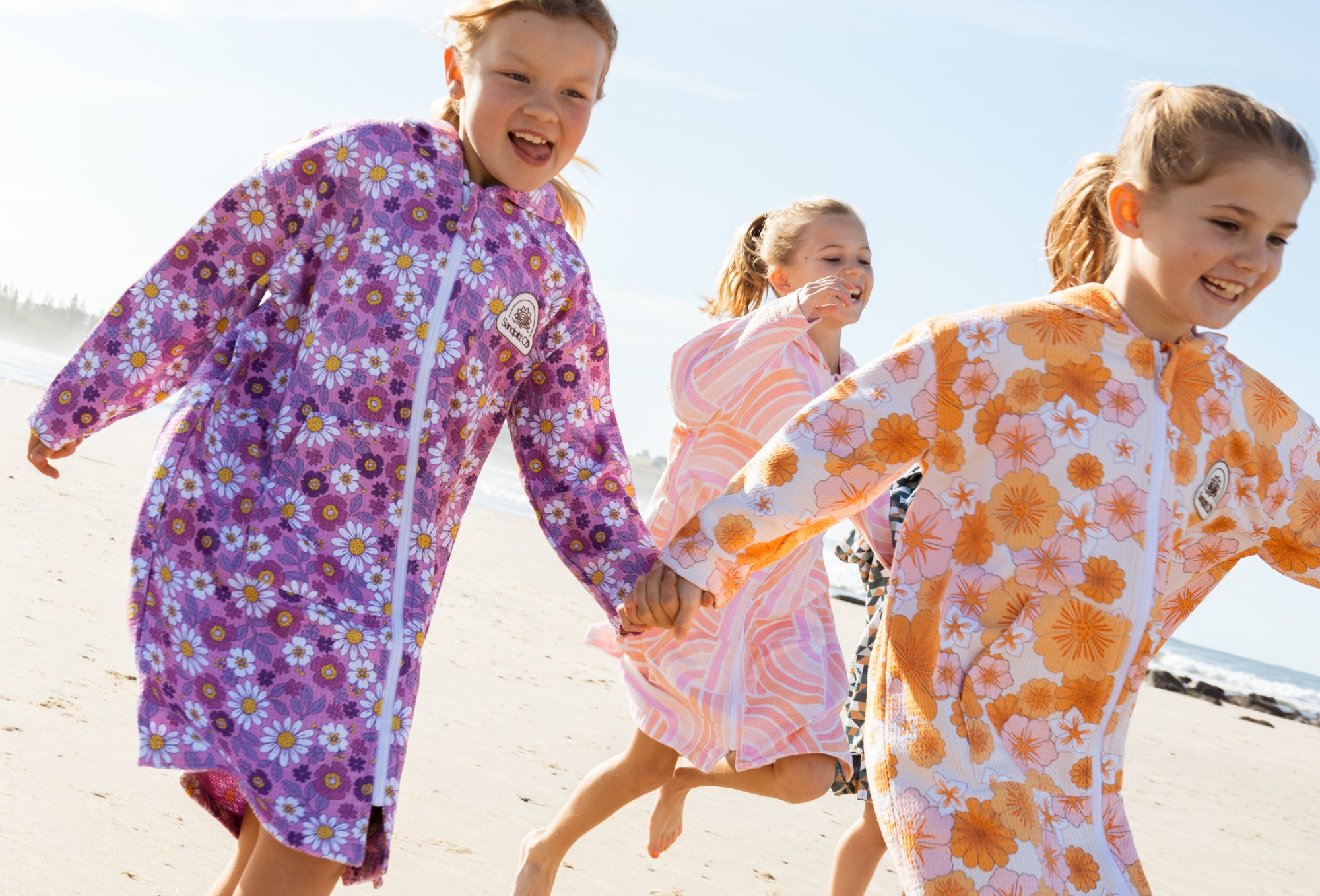Our wearable towels are perfect for swimming lessons, beach days and a game changer for travelling families